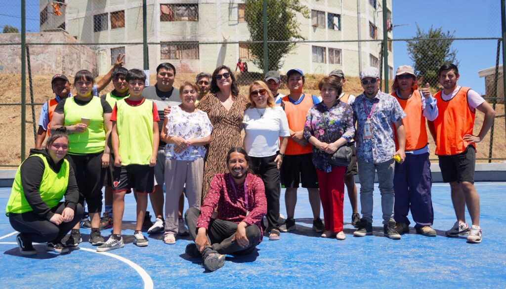 El proyecto, inaugurado con un partido de futbol entre jóvenes del sector, ahora cuenta con un cierre perimetral, iluminación, la conservación de equipamiento deportivo para basquetbol y baby futbol, además de un mejoramiento del pavimento hormigón.