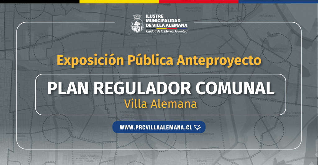 De acuerdo a la normativa vigente, la Ilustre Municipalidad de Villa Alemana expone a través de esta vía el estudio de actualización del Plan Regulador Comunal.