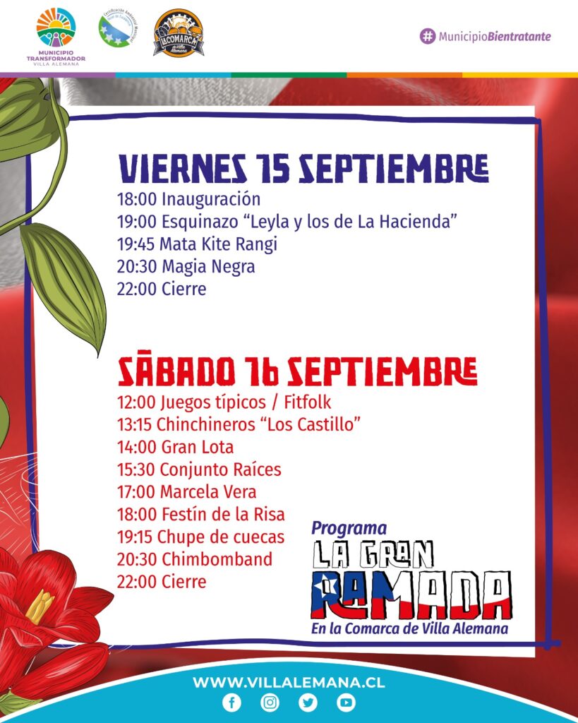 ¡Vecinos y vecinas! Los invitamos a disfrutar de estas fiestas patrias en La Gran Ramada de Villa Alemana.